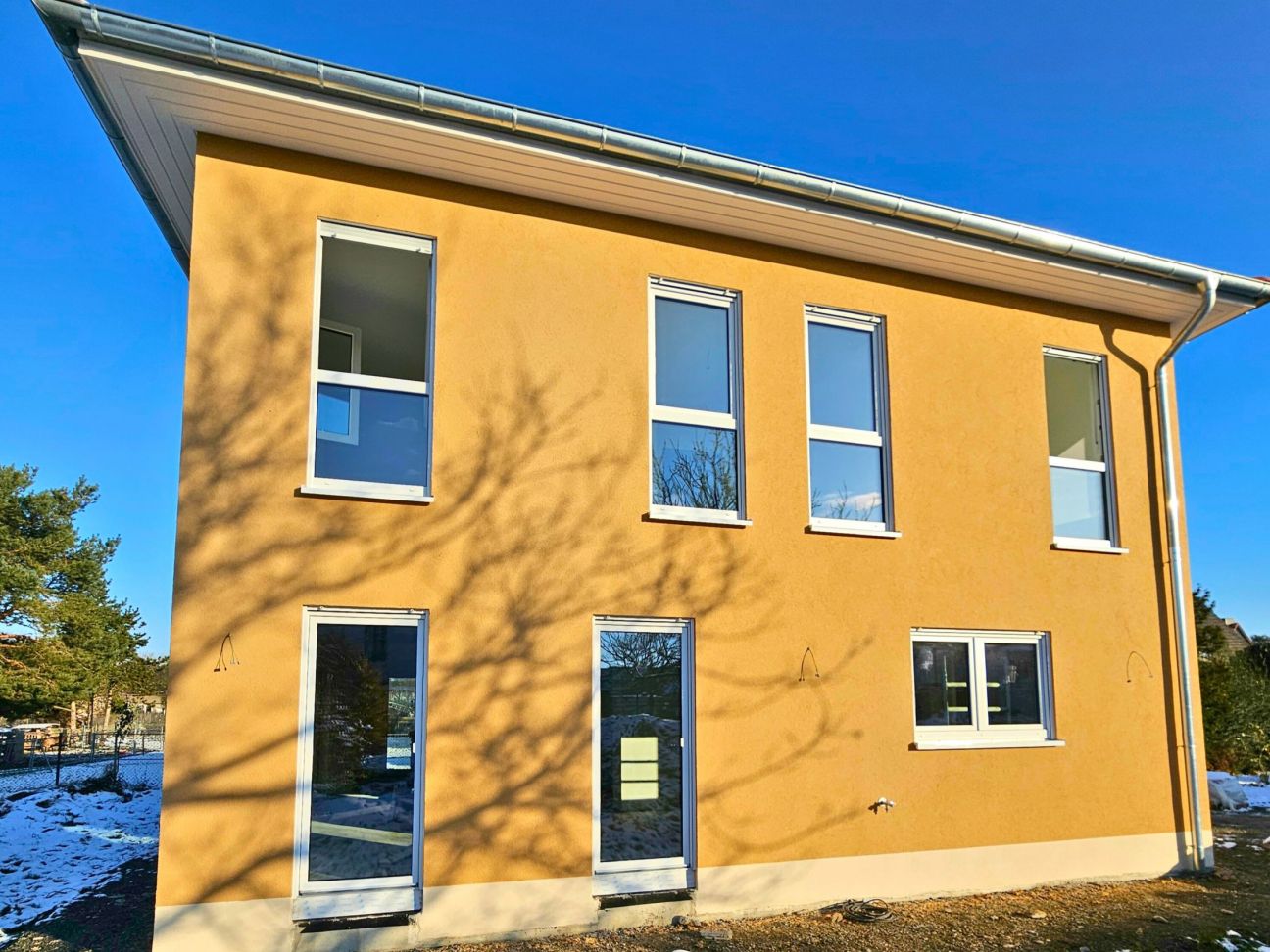 Besonders hervorzuheben ist die große Hebe-Schiebe-Anlage im Wohnzimmer, die für flexible Raumgestaltung sorgt. Im Obergeschoss wurde zudem ein zusätzliches Zimmer als Homeoffice geschaffen – ideal für das moderne Arbeiten von zu Hause.