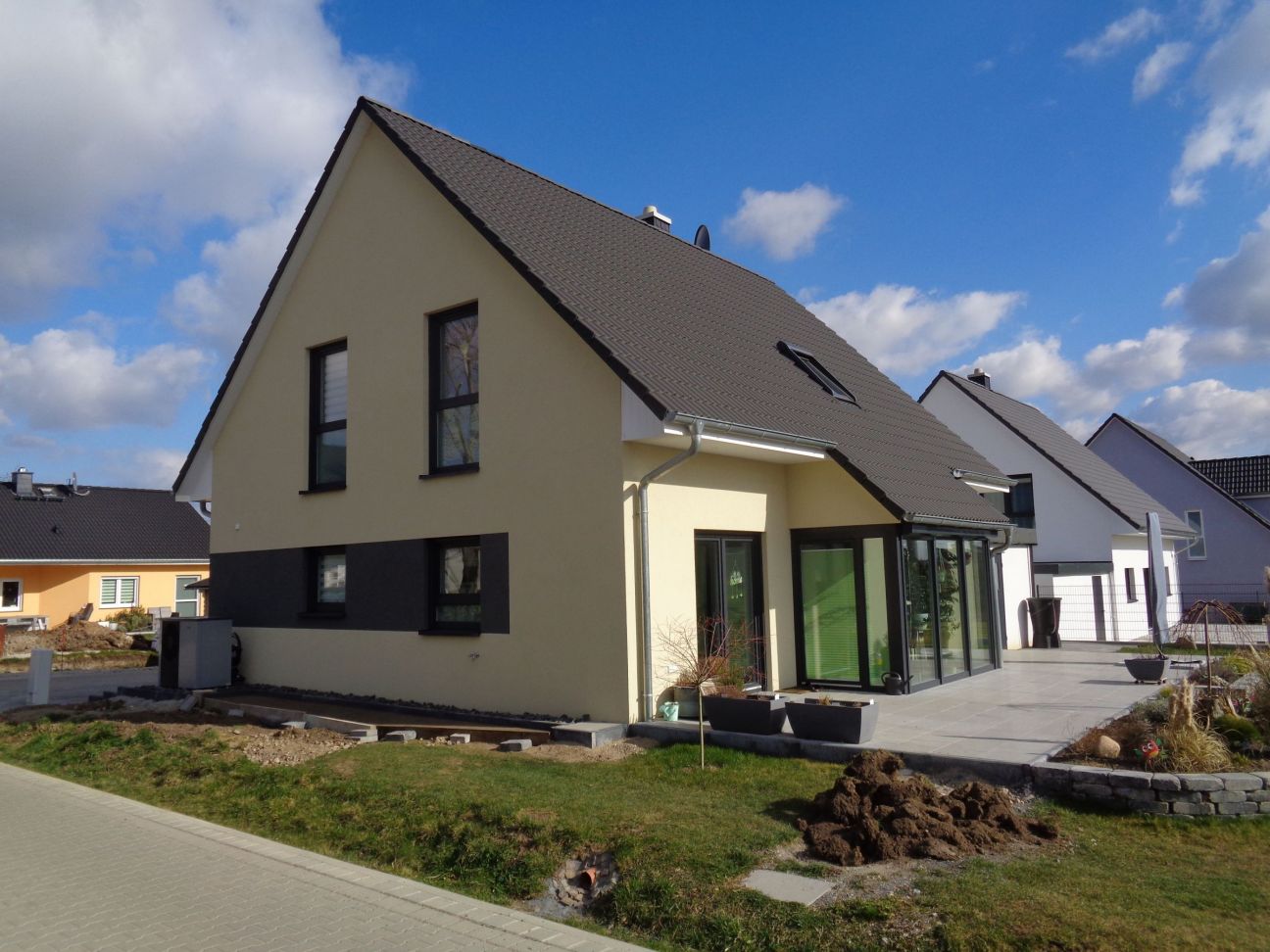 Mitte 2019 hat sich Familie K.R. für unser Einfamilienhaus Königssee in Schkeuditz entschieden. Bei der Planung standen mehrere Grundrissideen zur Auswahl – die Entscheidung fiel nicht leicht, doch schließlich entstand ein Zuhause, das genau zu den Wünschen der Familie passt. Besonders wichtig war der Wunsch nach einem gemütlichen Wintergarten, der auch an trüben Tagen ein heller Rückzugsort ist. Ein weiteres architektonisches Highlight ist der offene Luftraum im Eingangsbereich, der dem Dachgeschoss eine besondere Großzügigkeit verleiht.