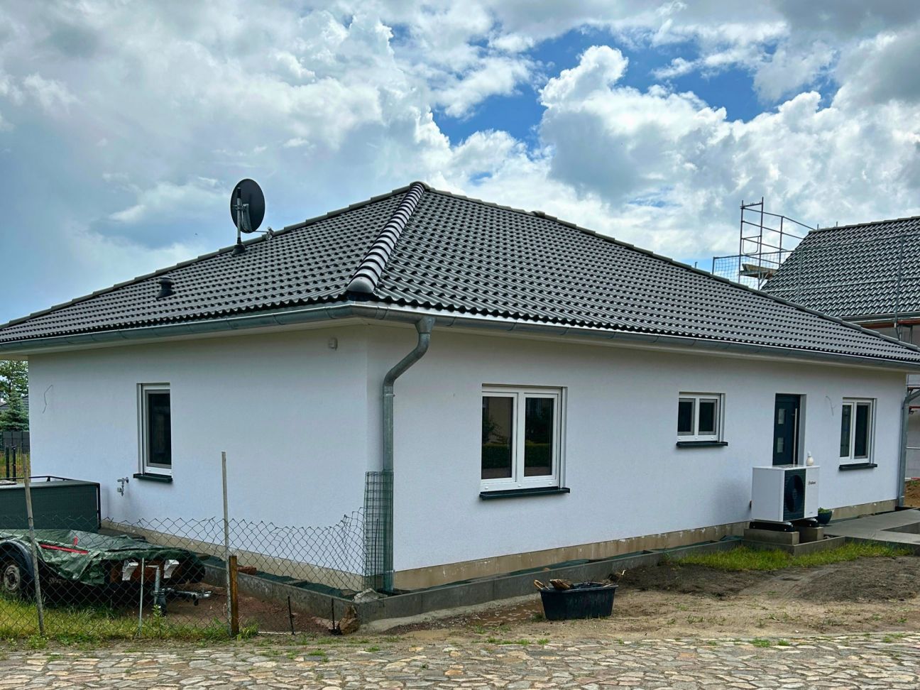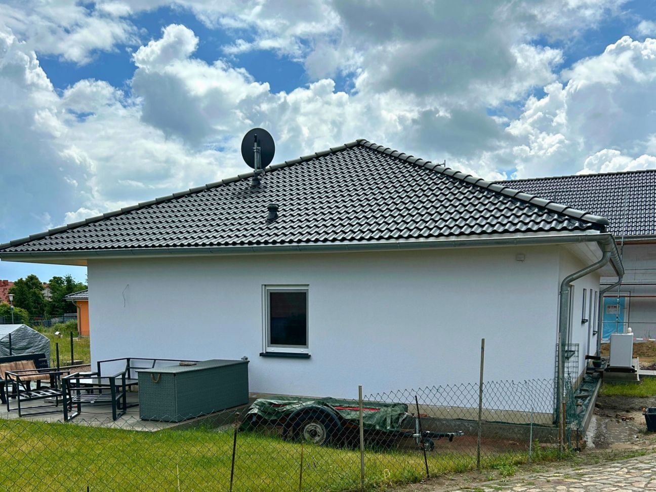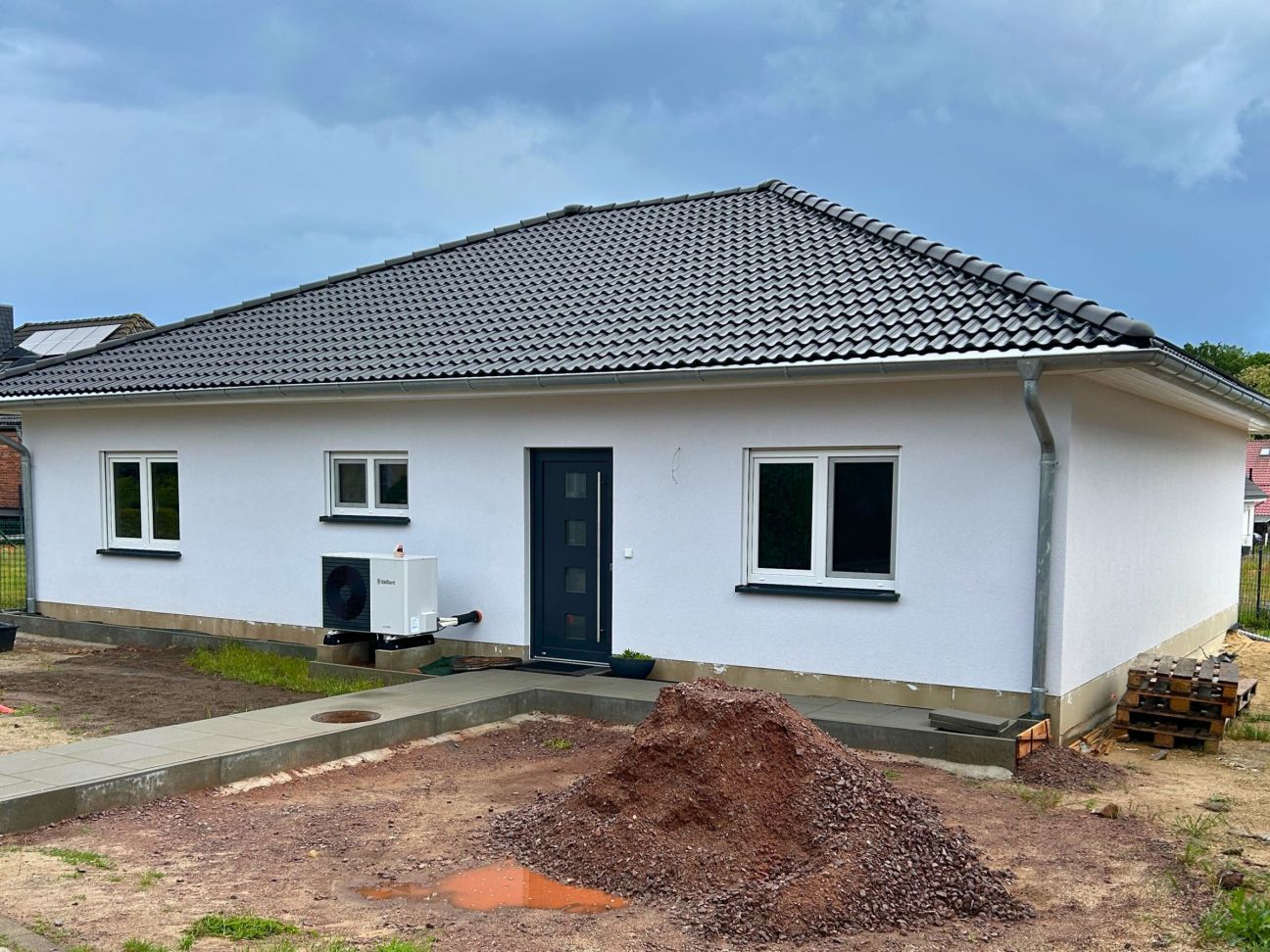 In Zielitz durften wir vor Kurzem einen wunderschönen Bungalow Bayreuth mit rund 104 m² Wohnfläche an Familie A.D. übergeben. Der durchdachte Grundriss passte nahezu perfekt zu den Vorstellungen unserer Bauherren – lediglich kleine Anpassungen wurden gemeinsam mit dem Architekten vorgenommen. Besonders überzeugt hat das Konzept des stufenlosen Wohnens auf einer Ebene, das Komfort und Barrierefreiheit vereint – heute schon an morgen gedacht! Auch eine Photovoltaikanlage wurde bereits auf dem Dach installiert und leistet künftig ihren Beitrag zur nachhaltigen Energieversorgung. Zum Zeitpunkt der Übergabe waren die Arbeiten an den Außenanlagen schon in vollem Gange – der letzte Schliff für ein rundum gelungenes Zuhause. Wir wünschen unserer Baufamilie alles erdenklich Gute und viele glückliche Jahre im neuen Heim!