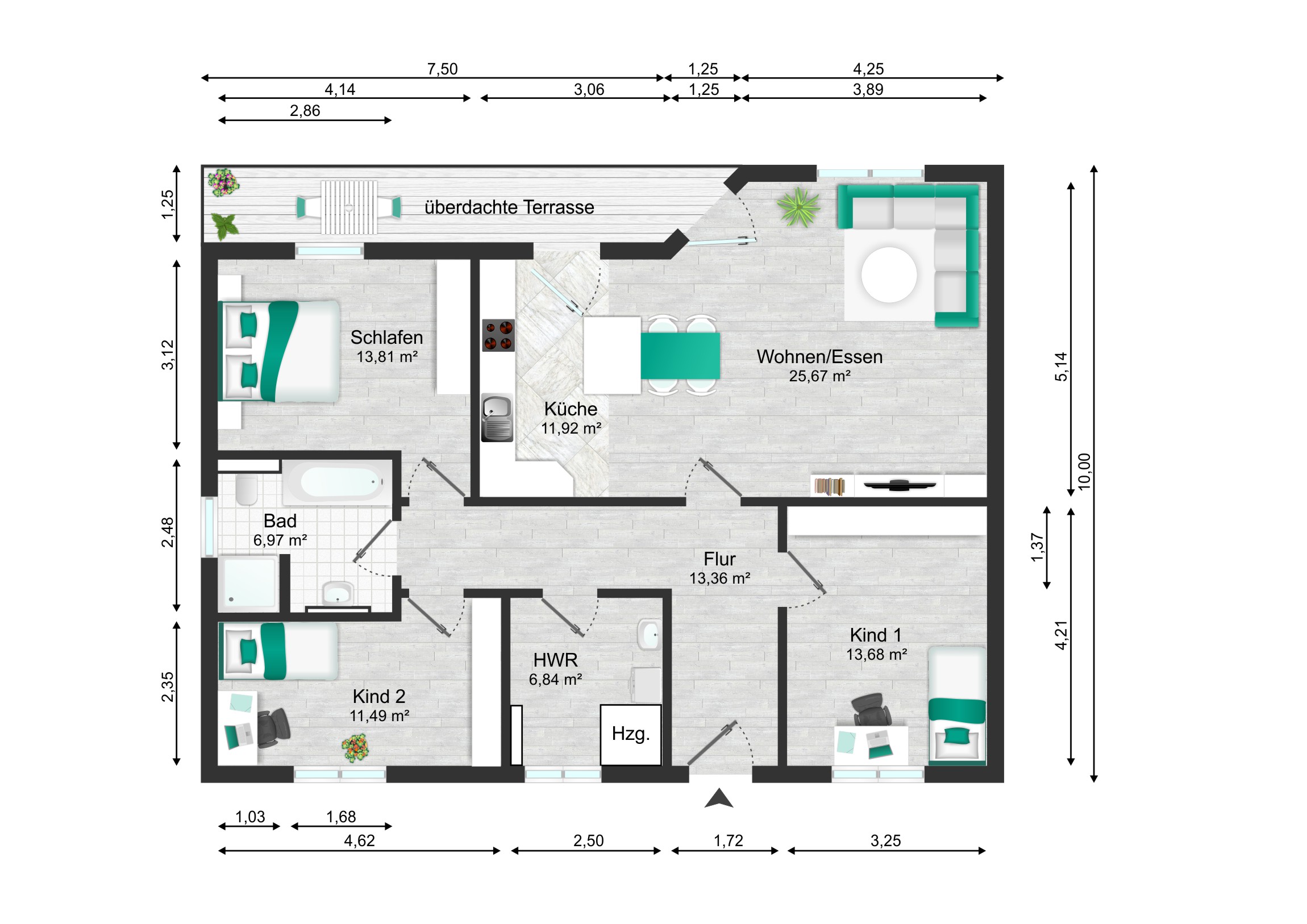 - teilüberdachte Terrasse