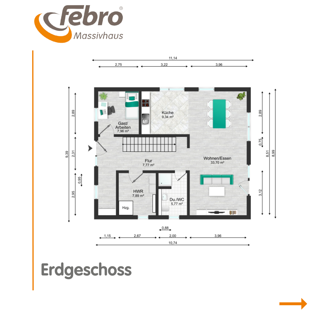 Besonderes Augenmerk legte die Familie auf die Bauweise: Das Haus wurde als Energieeffizienzhaus 40 errichtet und mit hochwertigen Poroton-Planziegeln gebaut – für ein nachhaltiges, energieeffizientes und gesundes Wohnklima. Ein weiteres Highlight ist die bewusst gewählte Betontreppe, die nicht nur architektonisch überzeugt, sondern auch dauerhaft Wertigkeit und Stabilität vermittelt.