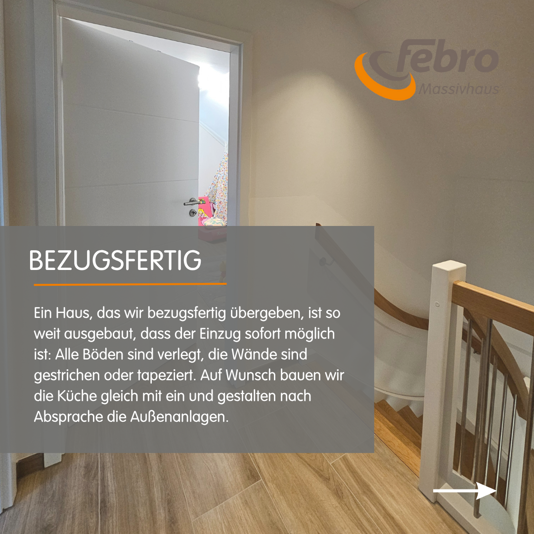 🔑 Schlüsselfertig – Dein Haus ist bei der Übergabe weitgehend fertiggestellt. Einige Eigenleistungen wie Maler- oder Bodenbelagsarbeiten übernimmst du selbst.