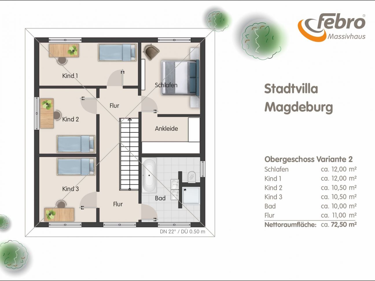Bitte beachten Sie: Bei diesem Angebot handelt es sich um ein projektiertes Beispielhaus. Gern realisieren wir auch Ihre individuelle Planung gemeinsam mit Febro Massivhaus.