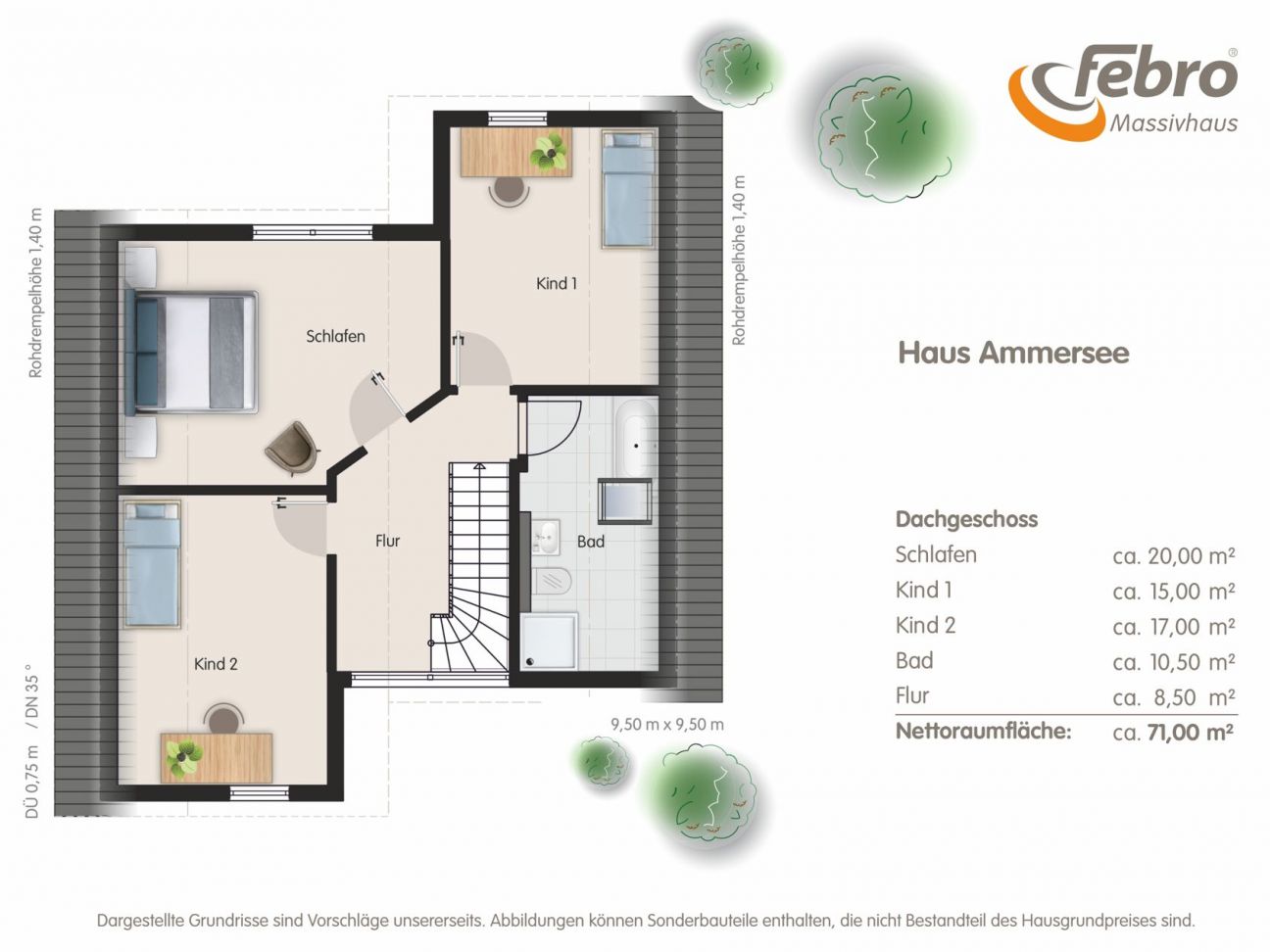 Mit einer Fläche von 797 m² bietet das Grundstück ausreichend Raum, um mit einem Febro Massivhaus individuell zu planen und zu gestalten.