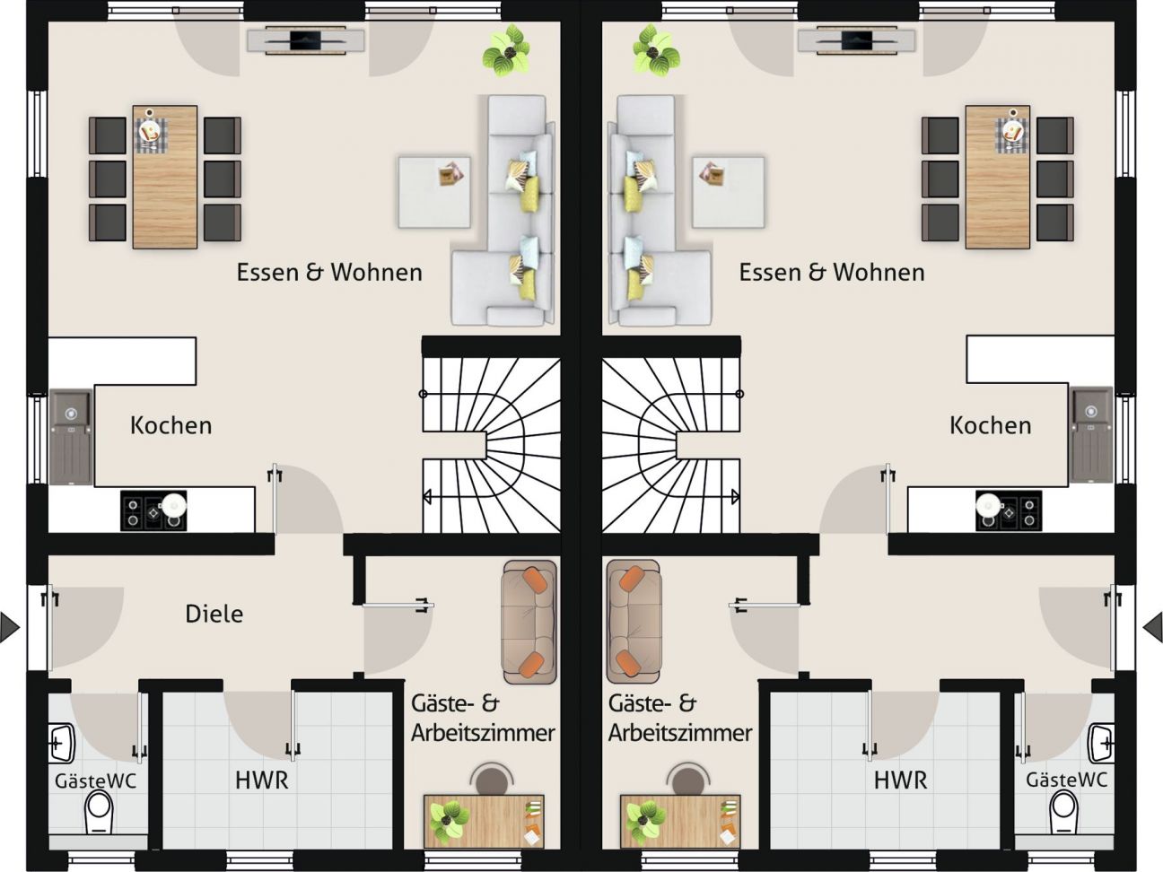 Im Erdgeschoss erwartet Sie eine offene und lichtdurchflutete Raumgestaltung: Die moderne Küche geht nahtlos in den Wohn- und Essbereich über, bodentiefe Fenster öffnen den Blick und den Zugang zum Garten – ideal für entspannte Stunden mit Familie und Freunden. Ein zusätzliches Zimmer bietet Flexibilität als Gäste- oder Arbeitszimmer.